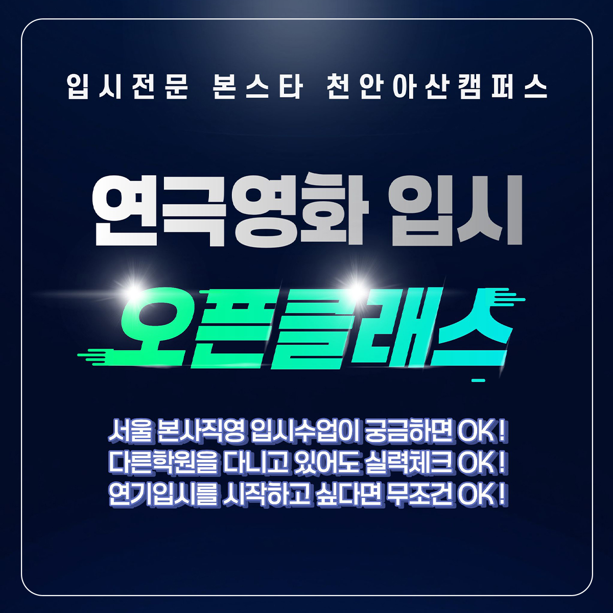 매년 입시설명회(연기원 -연기학원, 음악원 – 케이팝보컬학원)를 통해 대학입시의 정보를 발빠르게 학생들에게 공급합니다.