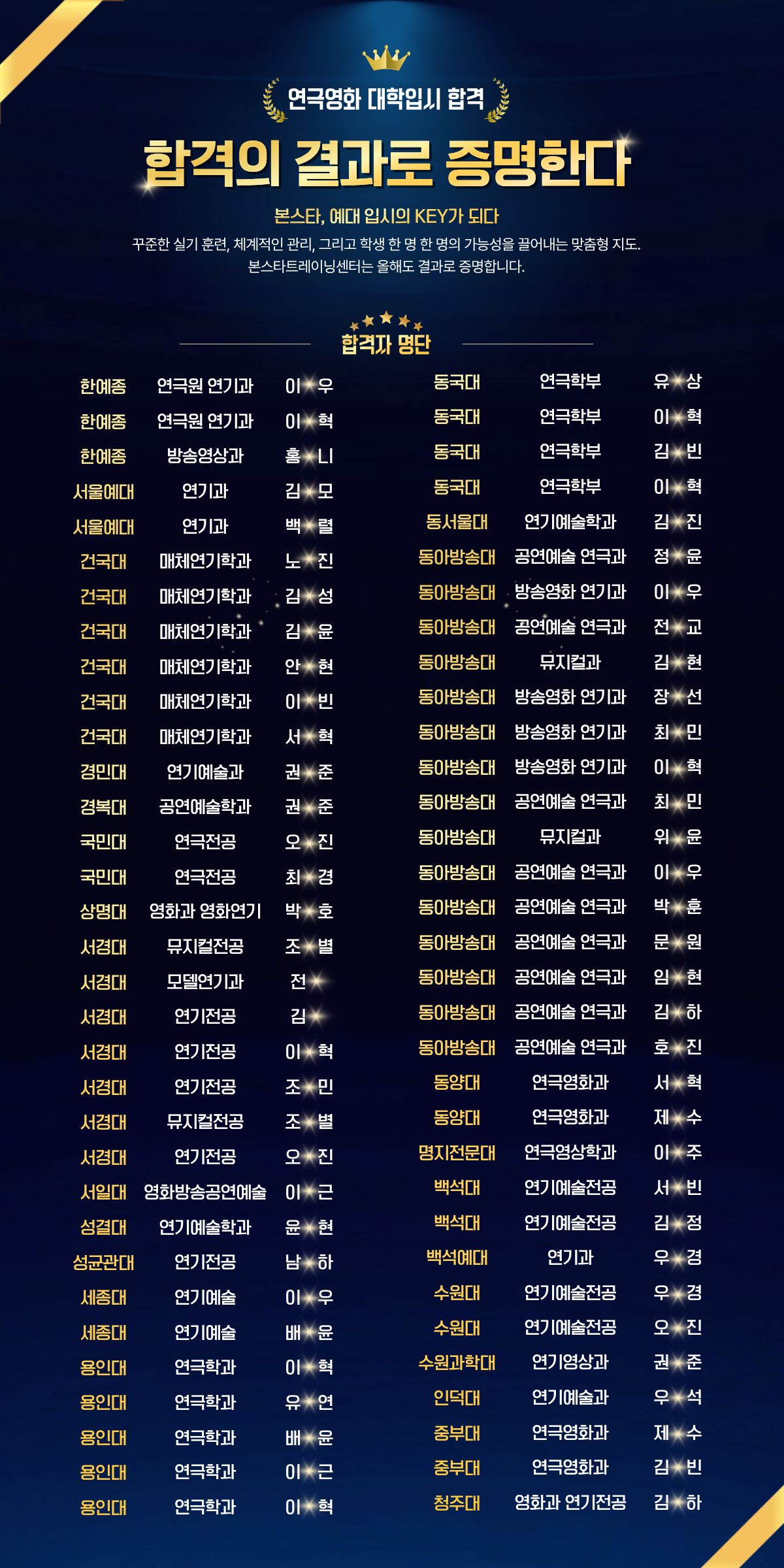 한예종, 서울예대, 중앙대, 동국대 등 주요 대학 입시를 완벽 대비합니다.
